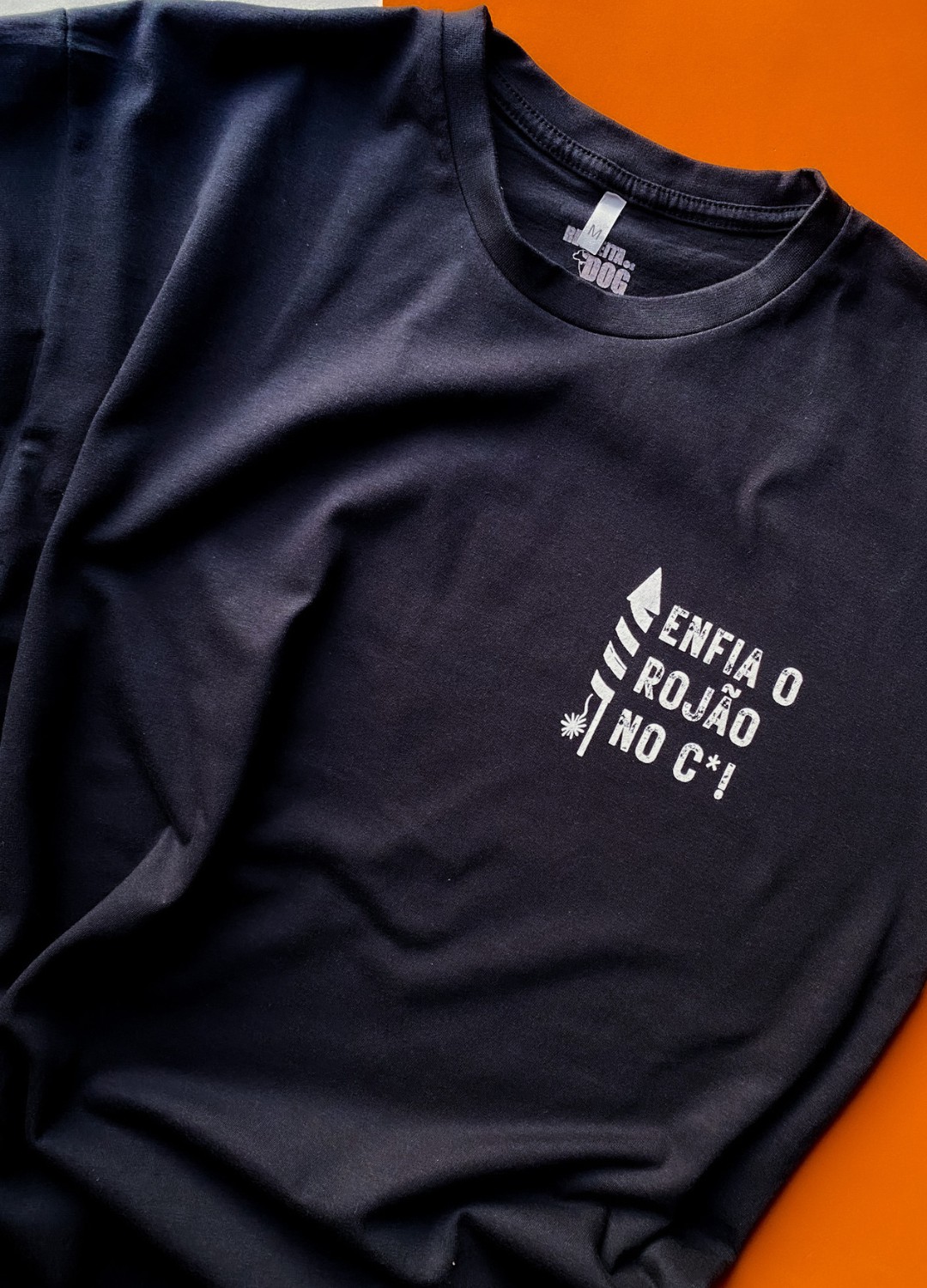 Camiseta "ENFIA O ROJÃO NO C*", na modelagem tradicional (unissex).