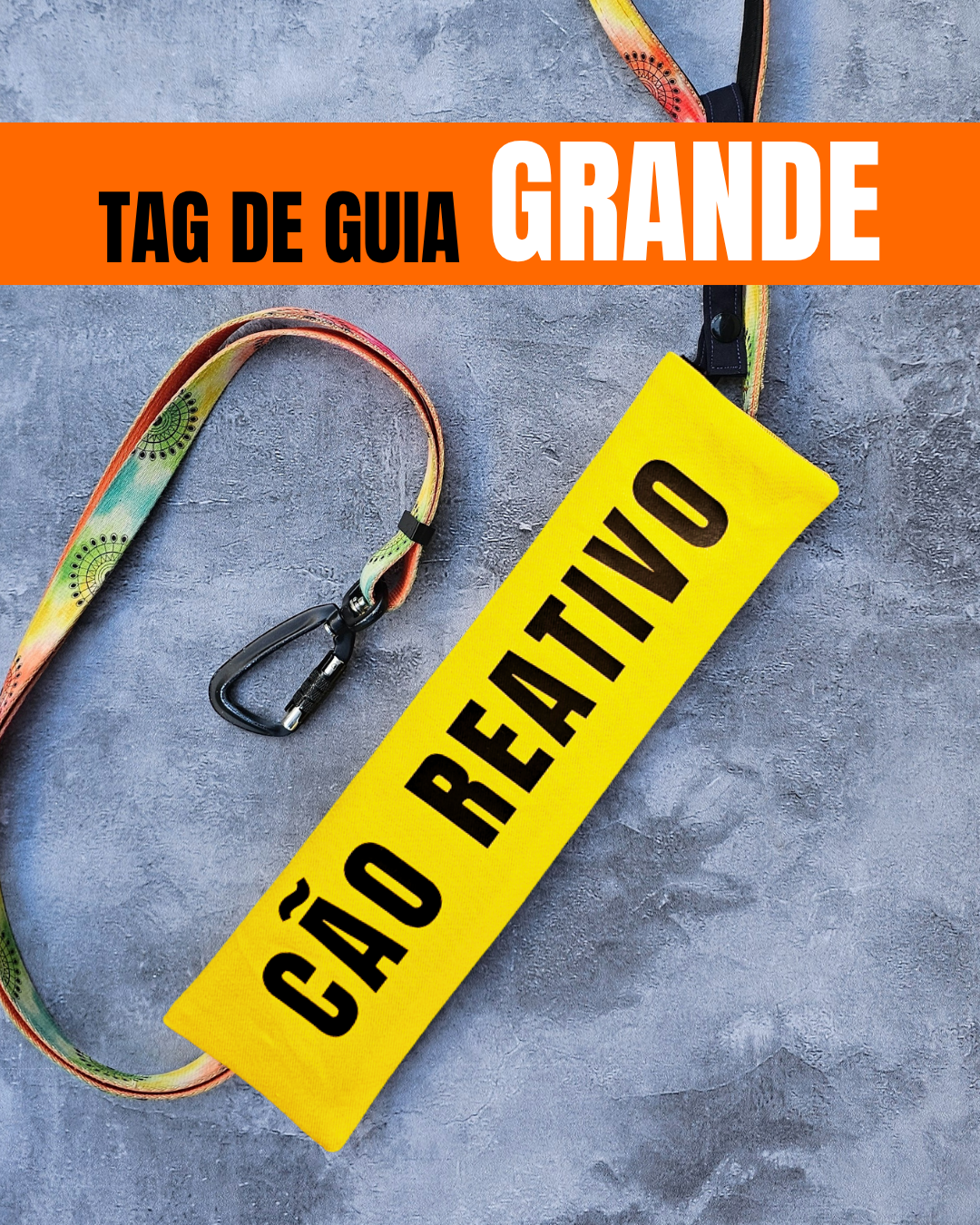 Tag de Guia / Sinalização de Guia - TAMANHO GRANDE (com bolsos internos) - "CÃO REATIVO"